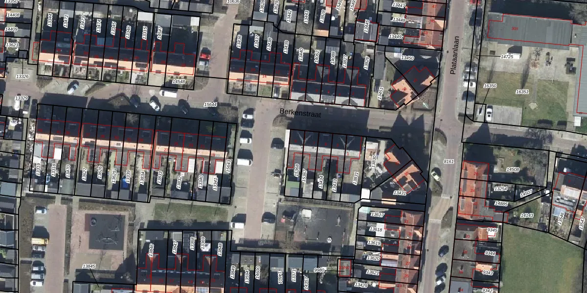 Gebruik de zoekbalk of klik op een perceel voor informatie over de adressen binnen dit perceel.