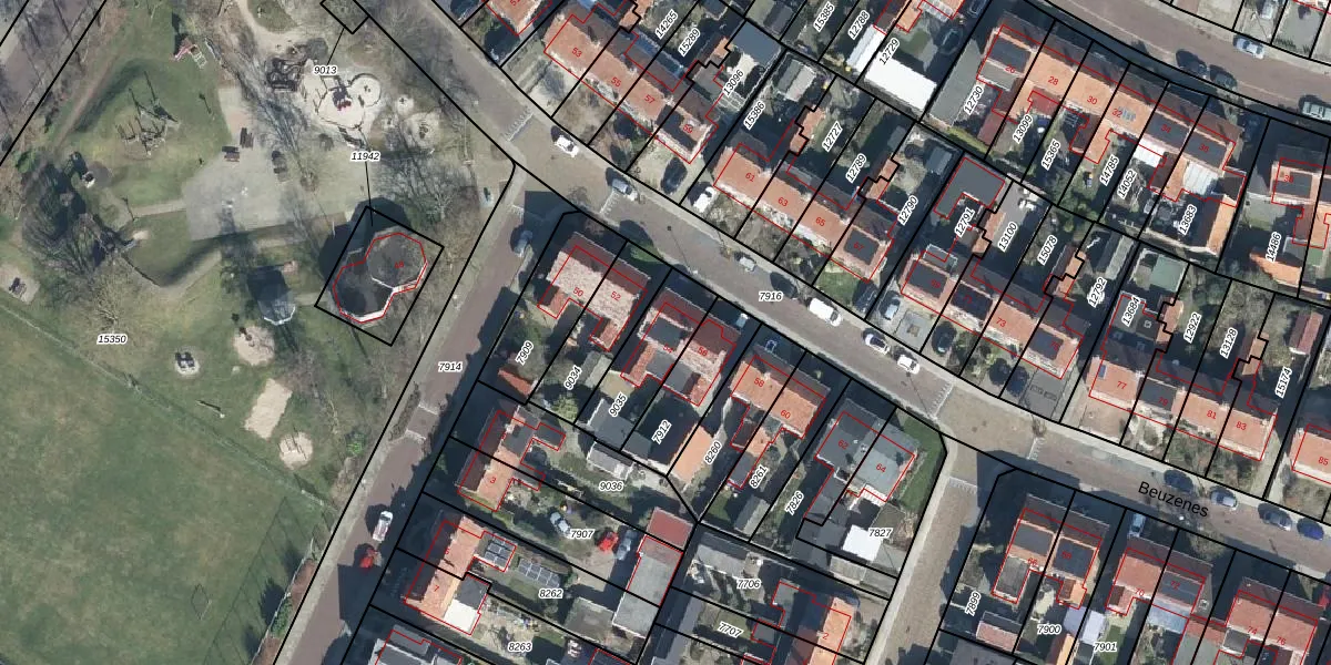 Het perceel waarop Beuzenes 54 staat heeft een oppervlakte van 230 m². Dit is een middelgroot perceel. De perceeloppervlakte wordt geregistreerd door het Kadaster. Gedetailleerde informatie over de maten van dit perceel kunt u vinden in het rapport Kadastrale kaart met maatvoering van Beuzenes 54.