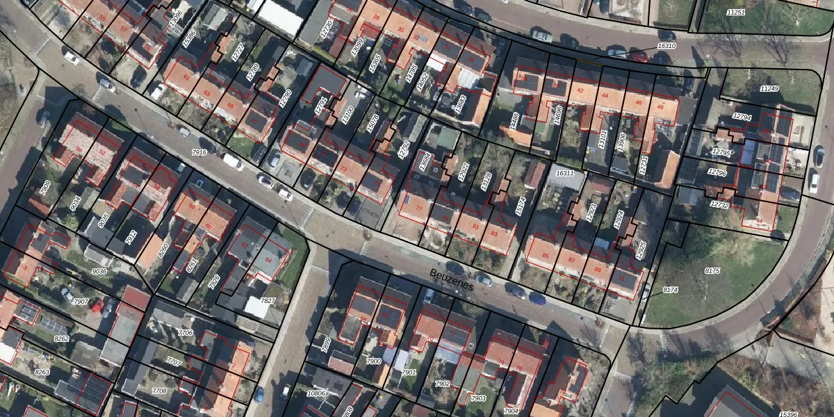 Het perceel waarop Beuzenes 77 staat heeft een oppervlakte van 261 m². Dit is een middelgroot perceel. De perceeloppervlakte wordt geregistreerd door het Kadaster. Gedetailleerde informatie over de maten van dit perceel kunt u vinden in het rapport Kadastrale kaart met maatvoering van Beuzenes 77.