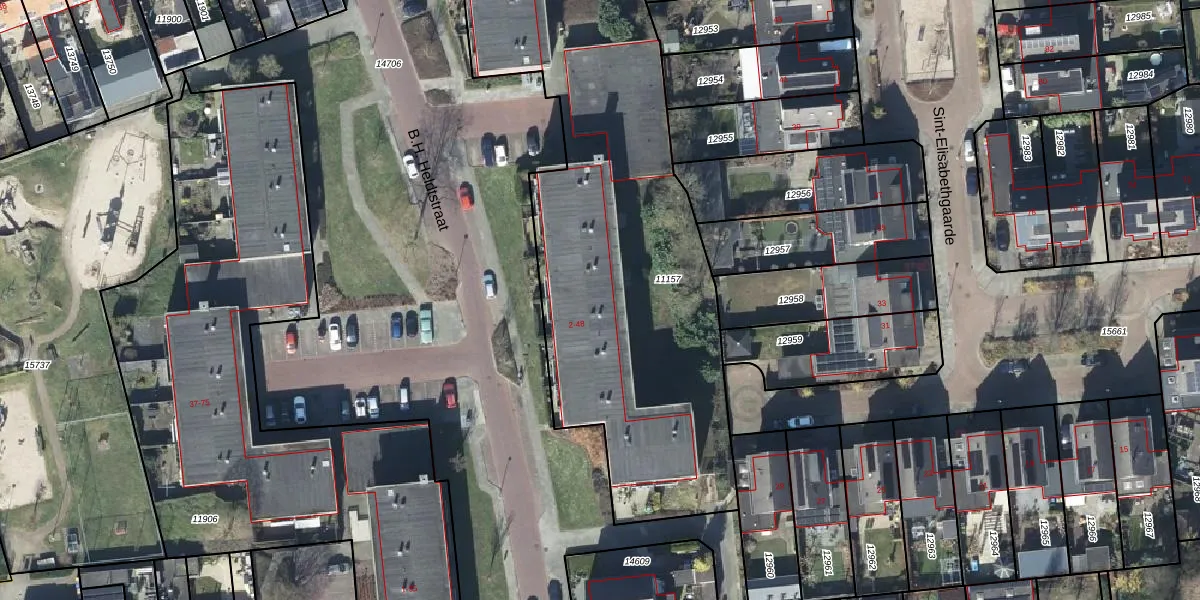 Het perceel waarop B.H. Heldtstraat 38 staat heeft een oppervlakte van 3050 m². Dit is een zeer groot perceel. De perceeloppervlakte wordt geregistreerd door het Kadaster. Gedetailleerde informatie over de maten van dit perceel kunt u vinden in het rapport Kadastrale kaart met maatvoering van B.H. Heldtstraat 38.