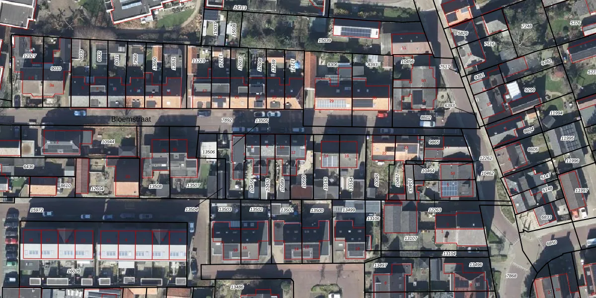 Het perceel waarop Bloemstraat 12 staat heeft een oppervlakte van 170 m². Dit is een middelgroot perceel. De perceeloppervlakte wordt geregistreerd door het Kadaster. Gedetailleerde informatie over de maten van dit perceel kunt u vinden in het rapport Kadastrale kaart met maatvoering van Bloemstraat 12.