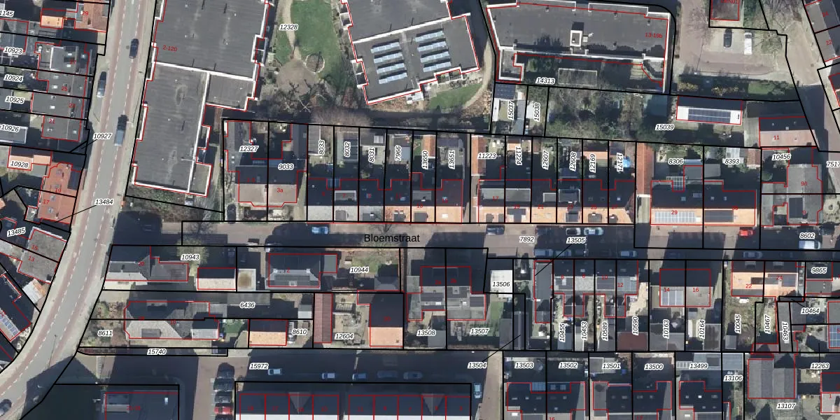Het perceel waarop Bloemstraat 13 staat heeft een oppervlakte van 129 m². Dit is een middelgroot perceel. De perceeloppervlakte wordt geregistreerd door het Kadaster. Gedetailleerde informatie over de maten van dit perceel kunt u vinden in het rapport Kadastrale kaart met maatvoering van Bloemstraat 13.