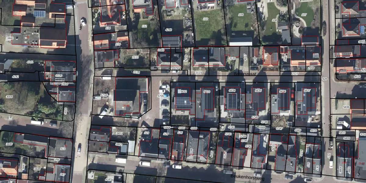 Gebruik de zoekbalk of klik op een perceel voor informatie over de adressen binnen dit perceel.