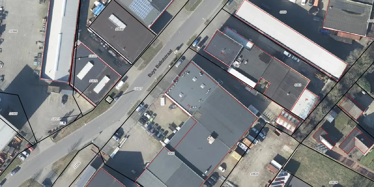 Het perceel waarop Buys Ballotstraat 13 staat heeft een oppervlakte van 4875 m². Dit is een zeer groot perceel. De perceeloppervlakte wordt geregistreerd door het Kadaster. Gedetailleerde informatie over de maten van dit perceel kunt u vinden in het rapport Kadastrale kaart met maatvoering van Buys Ballotstraat 13.