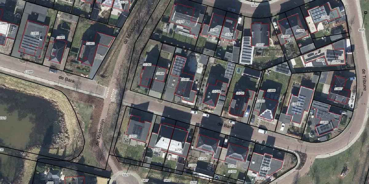 Het perceel waarop de Bank 12 staat heeft een oppervlakte van 562 m². Dit is een groot perceel. De perceeloppervlakte wordt geregistreerd door het Kadaster. Gedetailleerde informatie over de maten van dit perceel kunt u vinden in het rapport Kadastrale kaart met maatvoering van de Bank 12.