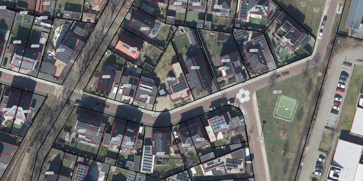 Het perceel waarop de Stip 10 staat heeft een oppervlakte van 530 m². Dit is een groot perceel. De perceeloppervlakte wordt geregistreerd door het Kadaster. Gedetailleerde informatie over de maten van dit perceel kunt u vinden in het rapport Kadastrale kaart met maatvoering van de Stip 10.
