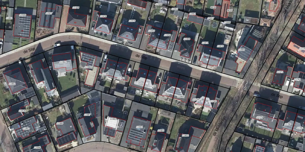 Gebruik de zoekbalk of klik op een perceel voor informatie over de adressen binnen dit perceel.