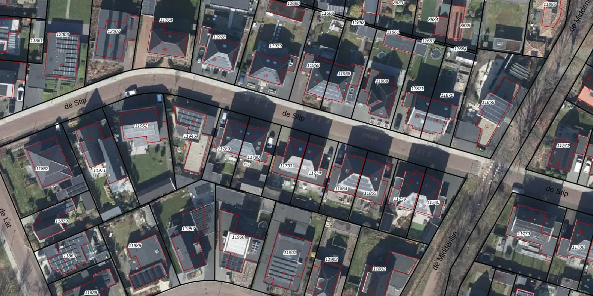 Het perceel waarop de Stip 27 staat heeft een oppervlakte van 250 m². Dit is een middelgroot perceel. De perceeloppervlakte wordt geregistreerd door het Kadaster. Gedetailleerde informatie over de maten van dit perceel kunt u vinden in het rapport Kadastrale kaart met maatvoering van de Stip 27.