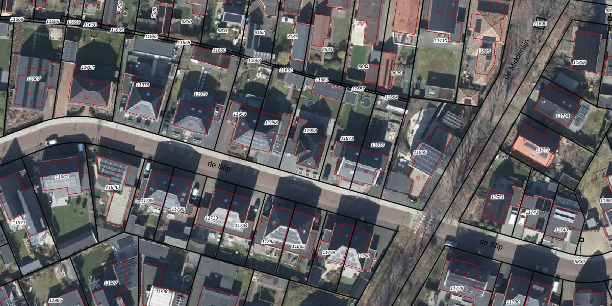 Het perceel waarop de Stip 30 staat heeft een oppervlakte van 435 m². Dit is een groot perceel. De perceeloppervlakte wordt geregistreerd door het Kadaster. Gedetailleerde informatie over de maten van dit perceel kunt u vinden in het rapport Kadastrale kaart met maatvoering van de Stip 30.