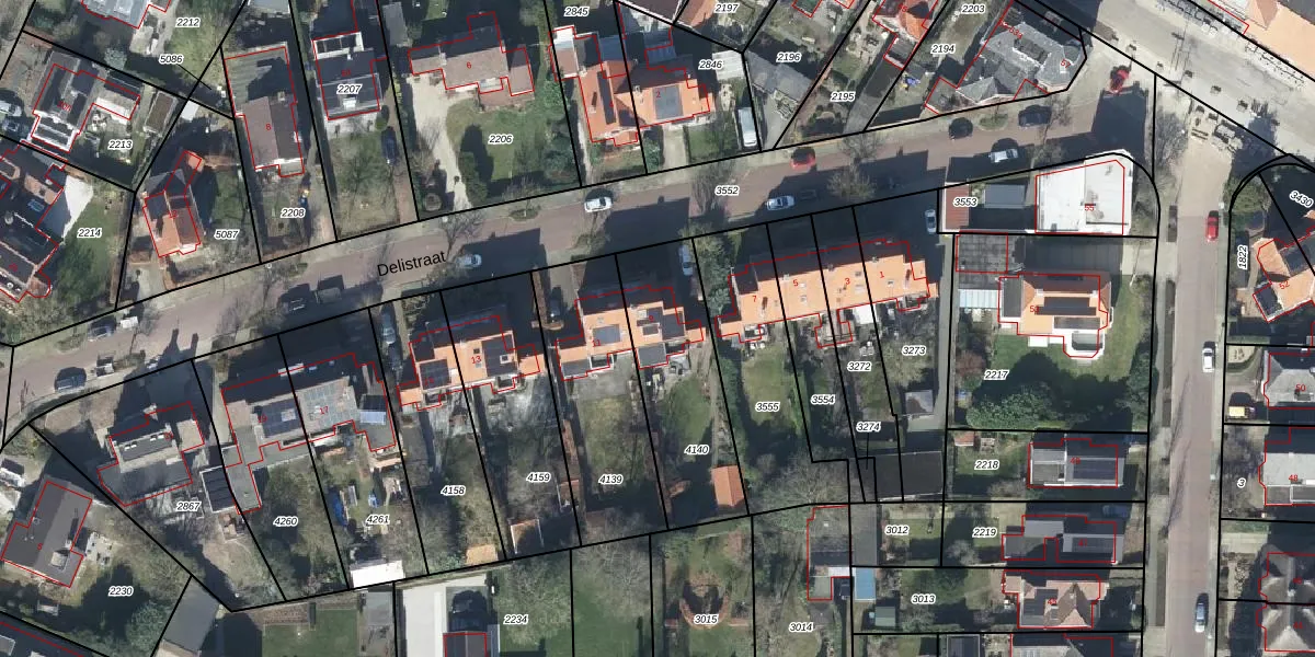 Het perceel waarop Delistraat 9 staat heeft een oppervlakte van 515 m². Dit is een groot perceel. De perceeloppervlakte wordt geregistreerd door het Kadaster. Gedetailleerde informatie over de maten van dit perceel kunt u vinden in het rapport Kadastrale kaart met maatvoering van Delistraat 9.