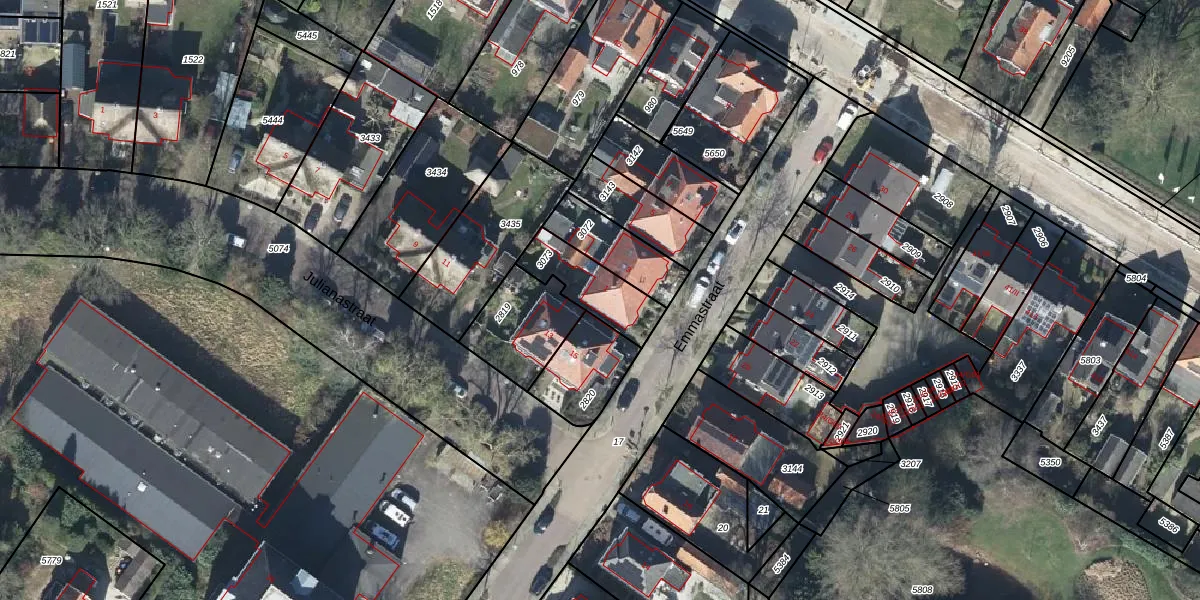 Het perceel waarop Emmastraat 1 staat heeft een oppervlakte van 185 m². Dit is een middelgroot perceel. De perceeloppervlakte wordt geregistreerd door het Kadaster. Gedetailleerde informatie over de maten van dit perceel kunt u vinden in het rapport Kadastrale kaart met maatvoering van Emmastraat 1.