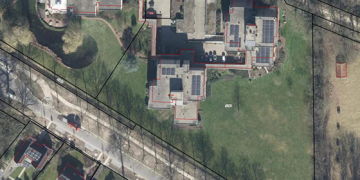 Het perceel waarop Frerikshof 92 staat heeft een oppervlakte van 1,2 ha. Dit is een zeer groot perceel. De perceeloppervlakte wordt geregistreerd door het Kadaster. Gedetailleerde informatie over de maten van dit perceel kunt u vinden in het rapport Kadastrale kaart met maatvoering van Frerikshof 92.
