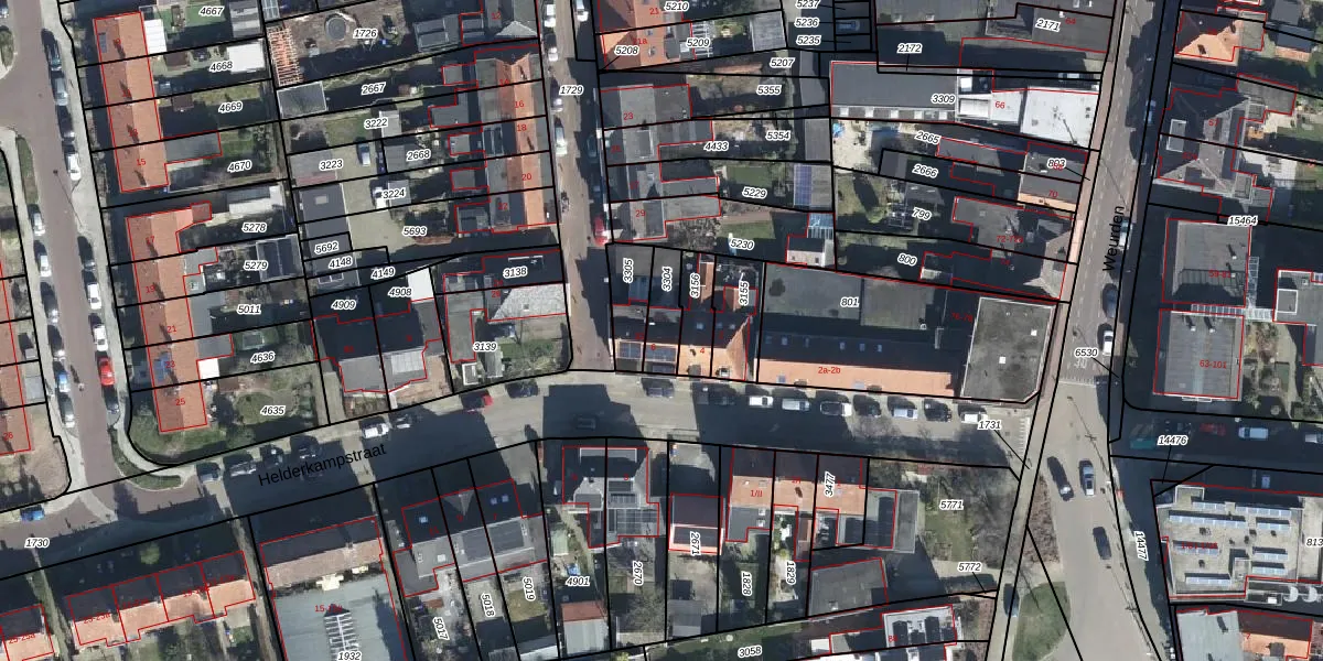 Het perceel waarop Helderkampstraat 6 staat heeft een oppervlakte van 95 m². Dit is een klein perceel. De perceeloppervlakte wordt geregistreerd door het Kadaster. Gedetailleerde informatie over de maten van dit perceel kunt u vinden in het rapport Kadastrale kaart met maatvoering van Helderkampstraat 6.