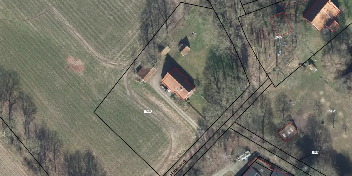 Honesweg 1 is gelegen op kadastraal perceel WTW00I16098. Deze kadastrale aanduiding is uniek en wordt gebruikt door het Kadaster om eigendomsrechten en andere zakelijke rechten vast te leggen. Het perceel maakt onderdeel uit van de kadastrale gemeente Winterswijk.