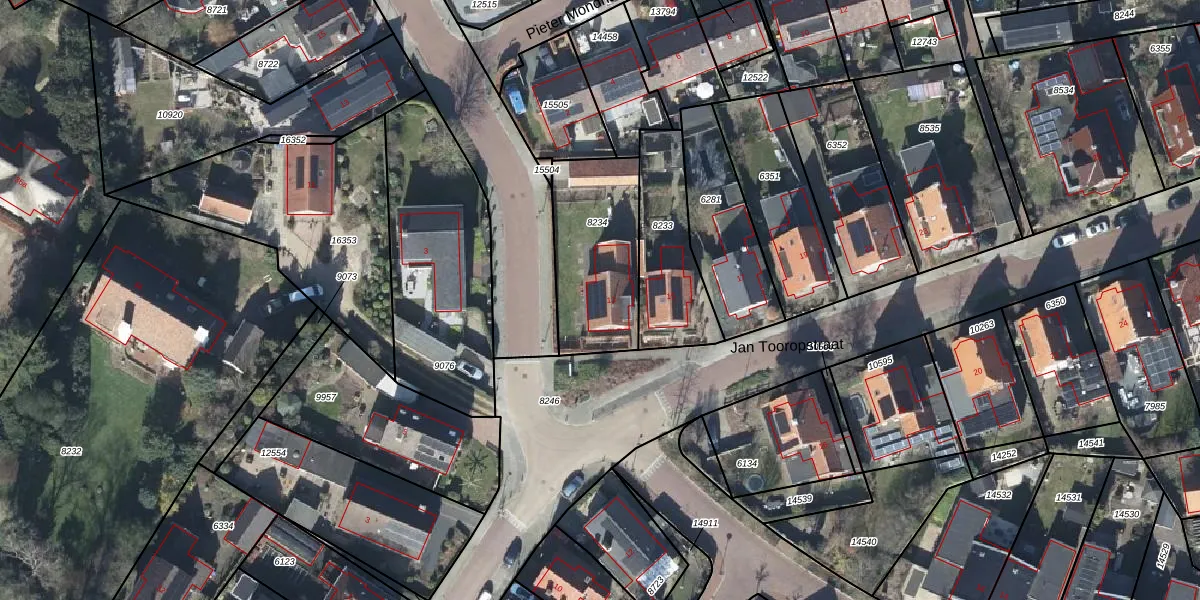 Het perceel waarop Jan Tooropstraat 13 staat heeft een oppervlakte van 450 m². Dit is een groot perceel. De perceeloppervlakte wordt geregistreerd door het Kadaster. Gedetailleerde informatie over de maten van dit perceel kunt u vinden in het rapport Kadastrale kaart met maatvoering van Jan Tooropstraat 13.