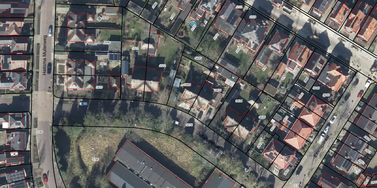 Het perceel waarop Julianastraat 5 staat heeft een oppervlakte van 403 m². Dit is een groot perceel. De perceeloppervlakte wordt geregistreerd door het Kadaster. Gedetailleerde informatie over de maten van dit perceel kunt u vinden in het rapport Kadastrale kaart met maatvoering van Julianastraat 5.