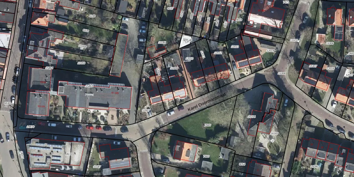 Karel Doormanstraat 13 is gelegen op kadastraal perceel WTW00I12009. Deze kadastrale aanduiding is uniek en wordt gebruikt door het Kadaster om eigendomsrechten en andere zakelijke rechten vast te leggen. Het perceel maakt onderdeel uit van de kadastrale gemeente Winterswijk.