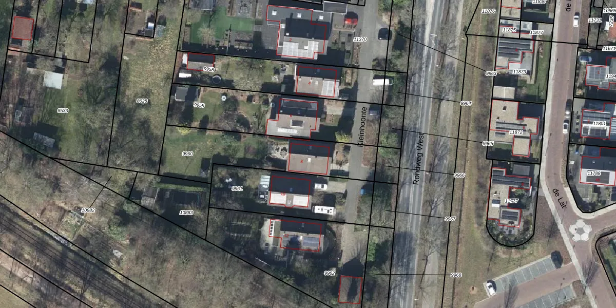 Het perceel waarop Kleinhoonte 8 staat heeft een oppervlakte van 860 m². Dit is een groot perceel. De perceeloppervlakte wordt geregistreerd door het Kadaster. Gedetailleerde informatie over de maten van dit perceel kunt u vinden in het rapport Kadastrale kaart met maatvoering van Kleinhoonte 8.