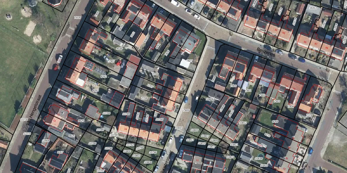 Gebruik de zoekbalk of klik op een perceel voor informatie over de adressen binnen dit perceel.