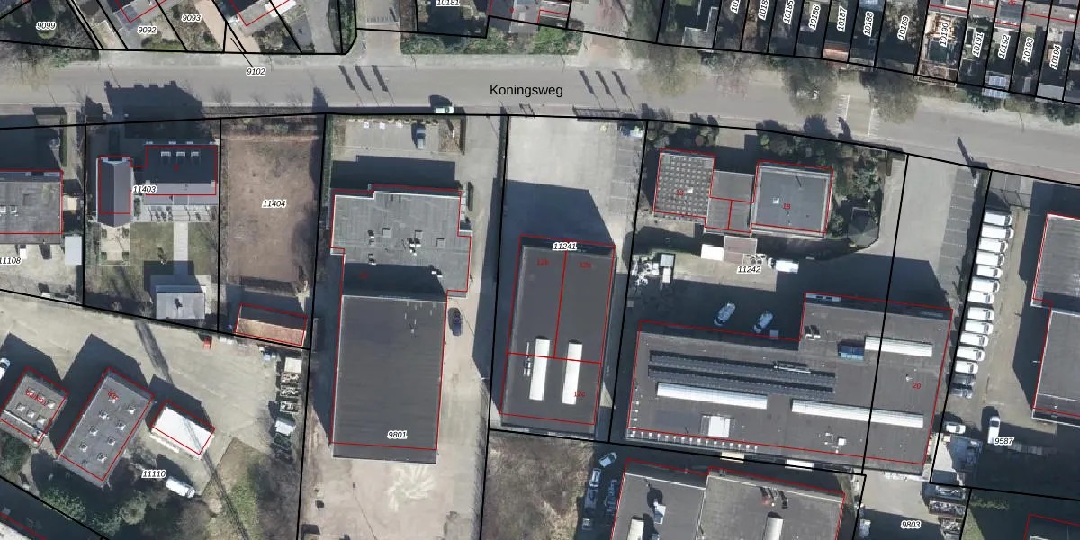 Het perceel waarop Koningsweg 12-b staat heeft een oppervlakte van 1435 m². Dit is een zeer groot perceel. De perceeloppervlakte wordt geregistreerd door het Kadaster. Gedetailleerde informatie over de maten van dit perceel kunt u vinden in het rapport Kadastrale kaart met maatvoering van Koningsweg 12-b.