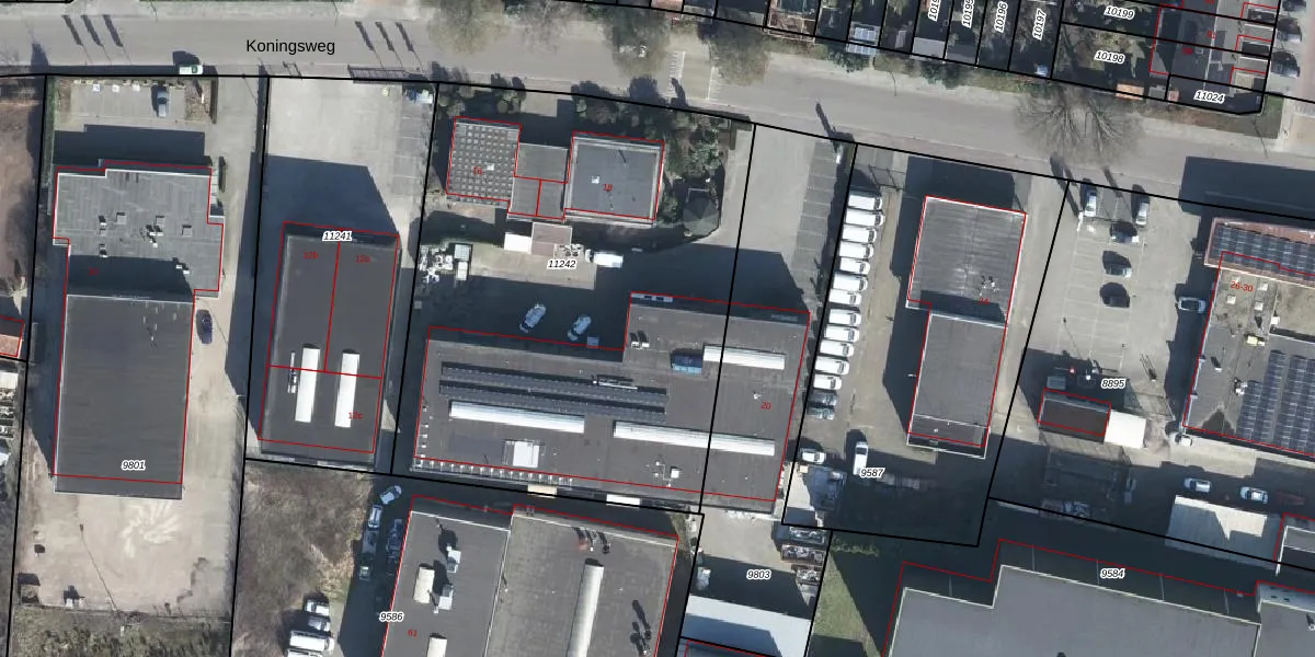 Het perceel waarop Koningsweg 20 staat heeft een oppervlakte van 2916 m². Dit is een zeer groot perceel. De perceeloppervlakte wordt geregistreerd door het Kadaster. Gedetailleerde informatie over de maten van dit perceel kunt u vinden in het rapport Kadastrale kaart met maatvoering van Koningsweg 20.