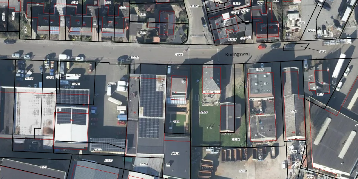 Het perceel waarop Koningsweg 42 staat heeft een oppervlakte van 515 m². Dit is een groot perceel. De perceeloppervlakte wordt geregistreerd door het Kadaster. Gedetailleerde informatie over de maten van dit perceel kunt u vinden in het rapport Kadastrale kaart met maatvoering van Koningsweg 42.