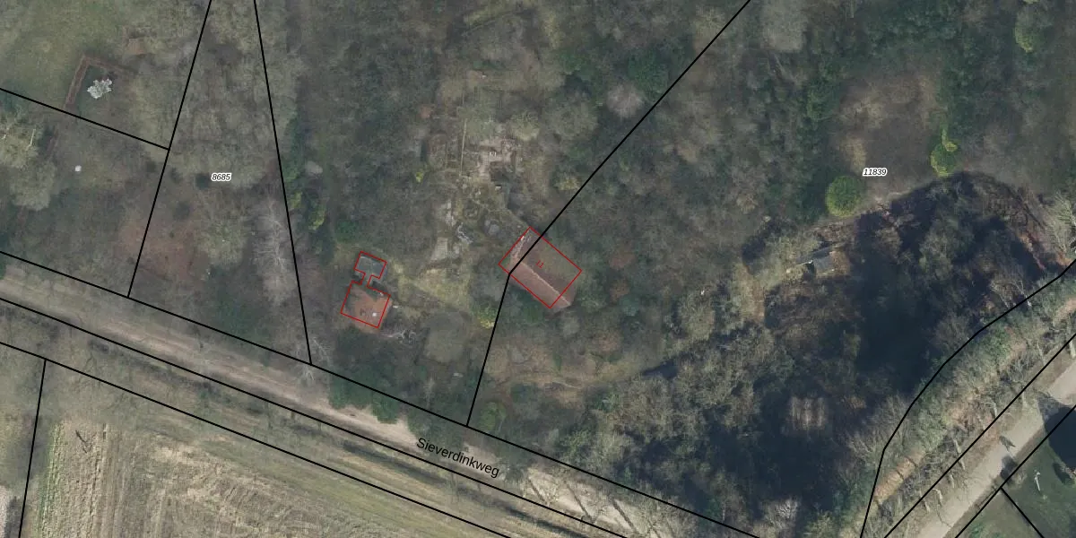 Sieverdinkweg 11 is gelegen op kadastraal perceel WTW00D11839. Deze kadastrale aanduiding is uniek en wordt gebruikt door het Kadaster om eigendomsrechten en andere zakelijke rechten vast te leggen. Het perceel maakt onderdeel uit van de kadastrale gemeente Winterswijk.