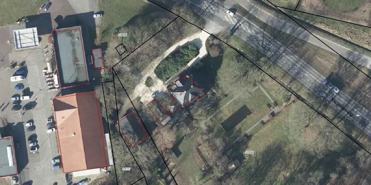 Het perceel waarop Kottenseweg 98 staat heeft een oppervlakte van 1,1 ha. Dit is een zeer groot perceel. De perceeloppervlakte wordt geregistreerd door het Kadaster. Gedetailleerde informatie over de maten van dit perceel kunt u vinden in het rapport Kadastrale kaart met maatvoering van Kottenseweg 98.