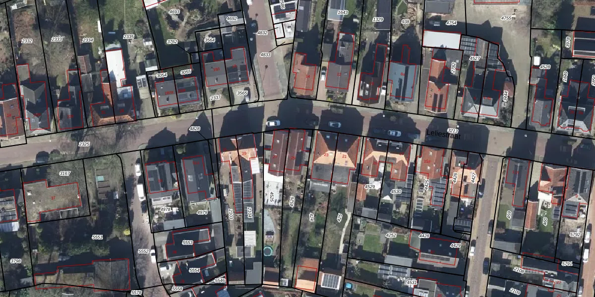 Het perceel waarop Leliestraat 25 staat heeft een oppervlakte van 355 m². Dit is een groot perceel. De perceeloppervlakte wordt geregistreerd door het Kadaster. Gedetailleerde informatie over de maten van dit perceel kunt u vinden in het rapport Kadastrale kaart met maatvoering van Leliestraat 25.