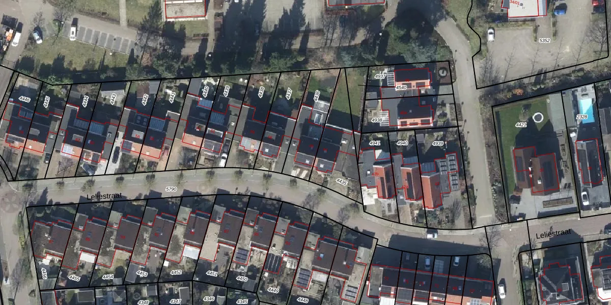 Het perceel waarop Leliestraat 46 staat heeft een oppervlakte van 341 m². Dit is een groot perceel. De perceeloppervlakte wordt geregistreerd door het Kadaster. Gedetailleerde informatie over de maten van dit perceel kunt u vinden in het rapport Kadastrale kaart met maatvoering van Leliestraat 46.