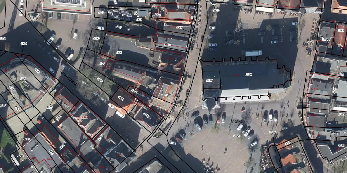 Het perceel waarop Markt 11 staat heeft een oppervlakte van 780 m². Dit is een groot perceel. De perceeloppervlakte wordt geregistreerd door het Kadaster. Gedetailleerde informatie over de maten van dit perceel kunt u vinden in het rapport Kadastrale kaart met maatvoering van Markt 11.