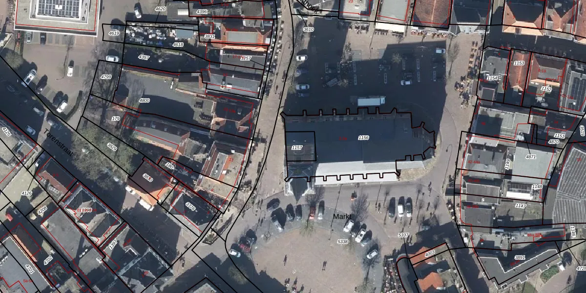 Het perceel waarop Markt 2 staat heeft een oppervlakte van 102 m². Dit is een middelgroot perceel. De perceeloppervlakte wordt geregistreerd door het Kadaster. Gedetailleerde informatie over de maten van dit perceel kunt u vinden in het rapport Kadastrale kaart met maatvoering van Markt 2.