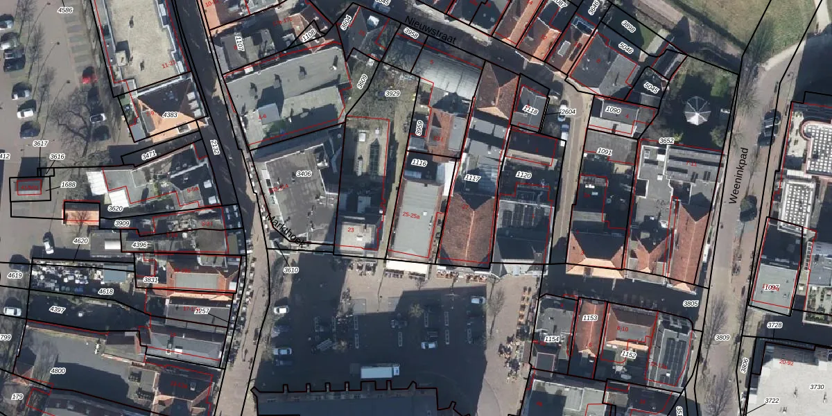 Het perceel waarop Markt 25-a staat heeft een oppervlakte van 319 m². Dit is een groot perceel. De perceeloppervlakte wordt geregistreerd door het Kadaster. Gedetailleerde informatie over de maten van dit perceel kunt u vinden in het rapport Kadastrale kaart met maatvoering van Markt 25-a.