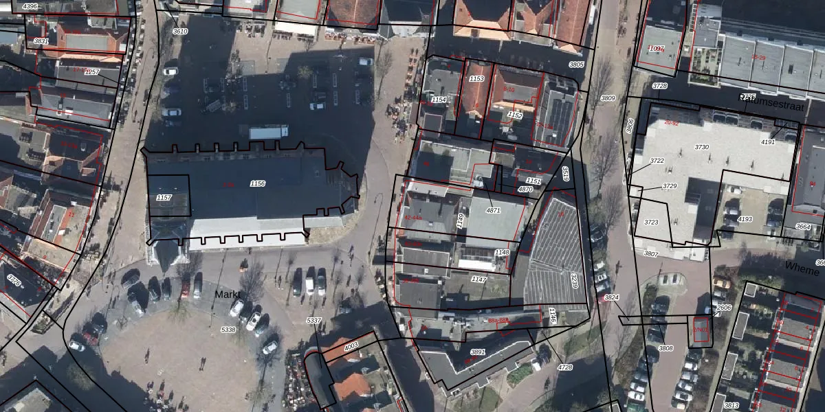 Het perceel waarop Markt 42 staat heeft een oppervlakte van 399 m². Dit is een groot perceel. De perceeloppervlakte wordt geregistreerd door het Kadaster. Gedetailleerde informatie over de maten van dit perceel kunt u vinden in het rapport Kadastrale kaart met maatvoering van Markt 42.