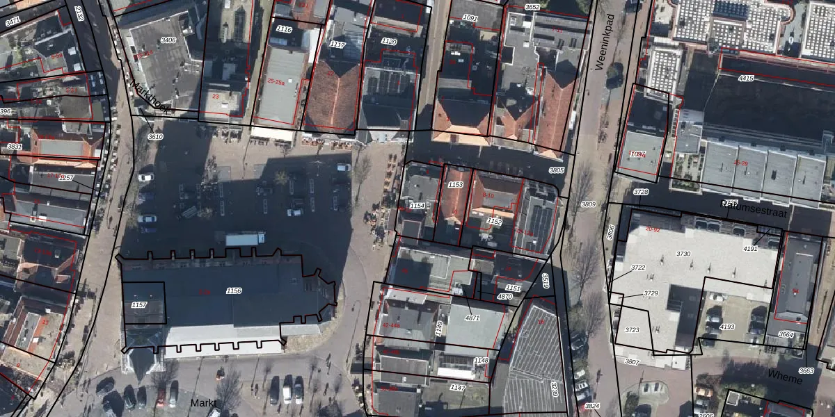 Het perceel waarop Markt 50 staat heeft een oppervlakte van 170 m². Dit is een middelgroot perceel. De perceeloppervlakte wordt geregistreerd door het Kadaster. Gedetailleerde informatie over de maten van dit perceel kunt u vinden in het rapport Kadastrale kaart met maatvoering van Markt 50.