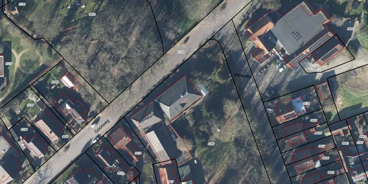 Het perceel waarop Goorweg 9 staat heeft een oppervlakte van 4237 m². Dit is een zeer groot perceel. De perceeloppervlakte wordt geregistreerd door het Kadaster. Gedetailleerde informatie over de maten van dit perceel kunt u vinden in het rapport Kadastrale kaart met maatvoering van Goorweg 9.
