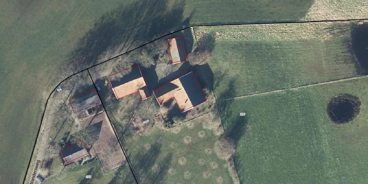 Het perceel waarop Wandersweg 5 staat heeft een oppervlakte van 1,6 ha. Dit is een zeer groot perceel. De perceeloppervlakte wordt geregistreerd door het Kadaster. Gedetailleerde informatie over de maten van dit perceel kunt u vinden in het rapport Kadastrale kaart met maatvoering van Wandersweg 5.