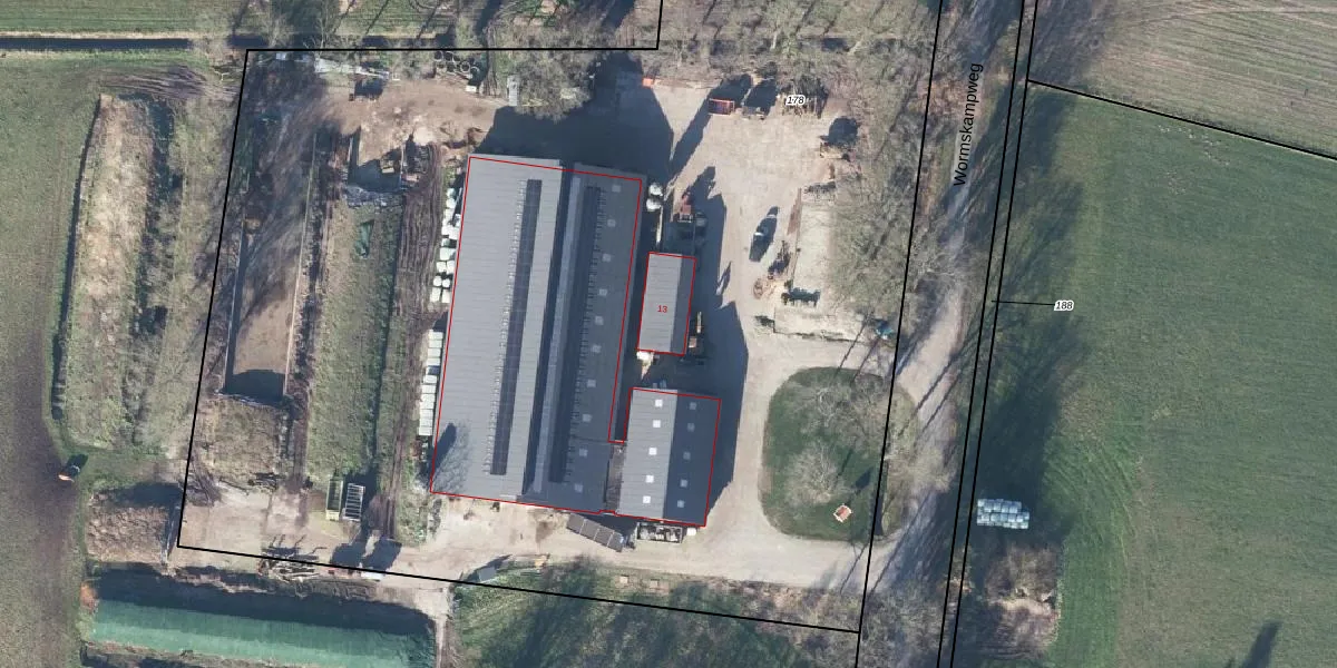 Wormskampweg 13 is gelegen op kadastraal perceel WTW00P178. Deze kadastrale aanduiding is uniek en wordt gebruikt door het Kadaster om eigendomsrechten en andere zakelijke rechten vast te leggen. Het perceel maakt onderdeel uit van de kadastrale gemeente Winterswijk.