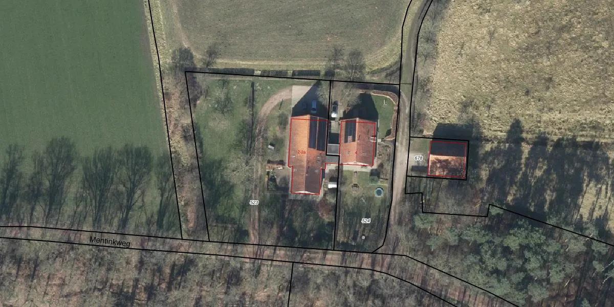Het perceel waarop Mentinkweg 2 staat heeft een oppervlakte van 2435 m². Dit is een zeer groot perceel. De perceeloppervlakte wordt geregistreerd door het Kadaster. Gedetailleerde informatie over de maten van dit perceel kunt u vinden in het rapport Kadastrale kaart met maatvoering van Mentinkweg 2.