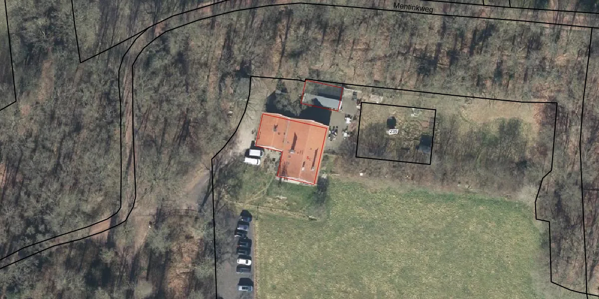 Het perceel waarop Mentinkweg 5 staat heeft een oppervlakte van 4,0 ha. Dit is een zeer groot perceel. De perceeloppervlakte wordt geregistreerd door het Kadaster. Gedetailleerde informatie over de maten van dit perceel kunt u vinden in het rapport Kadastrale kaart met maatvoering van Mentinkweg 5.