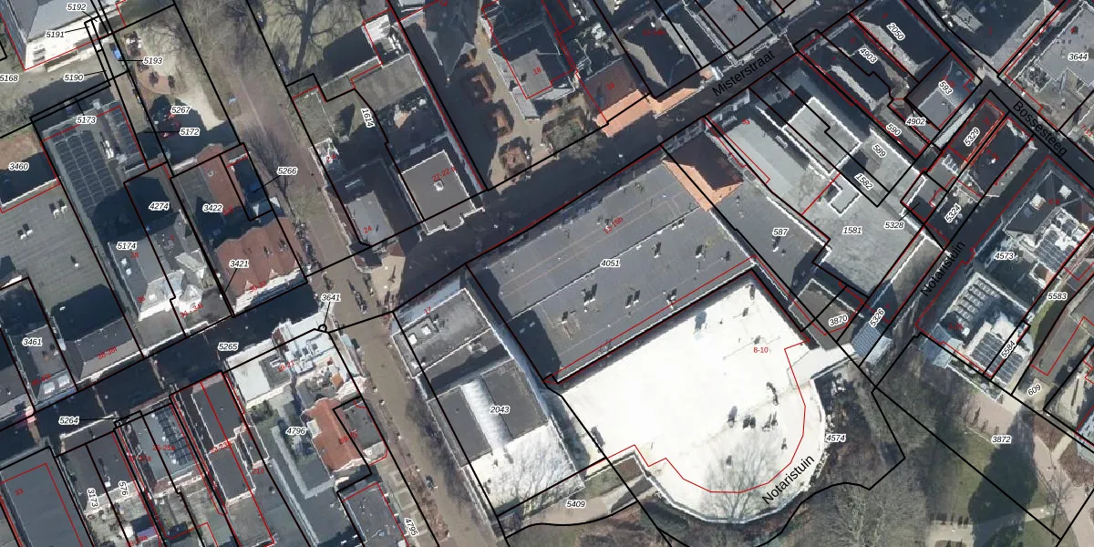 Het perceel waarop Misterstraat 15-a staat heeft een oppervlakte van 1233 m². Dit is een zeer groot perceel. De perceeloppervlakte wordt geregistreerd door het Kadaster. Gedetailleerde informatie over de maten van dit perceel kunt u vinden in het rapport Kadastrale kaart met maatvoering van Misterstraat 15-a.