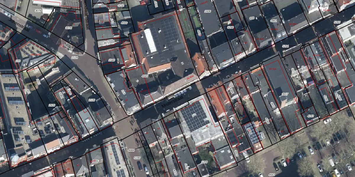 Het perceel waarop Misterstraat 58 staat heeft een oppervlakte van 1901 m². Dit is een zeer groot perceel. De perceeloppervlakte wordt geregistreerd door het Kadaster. Gedetailleerde informatie over de maten van dit perceel kunt u vinden in het rapport Kadastrale kaart met maatvoering van Misterstraat 58.