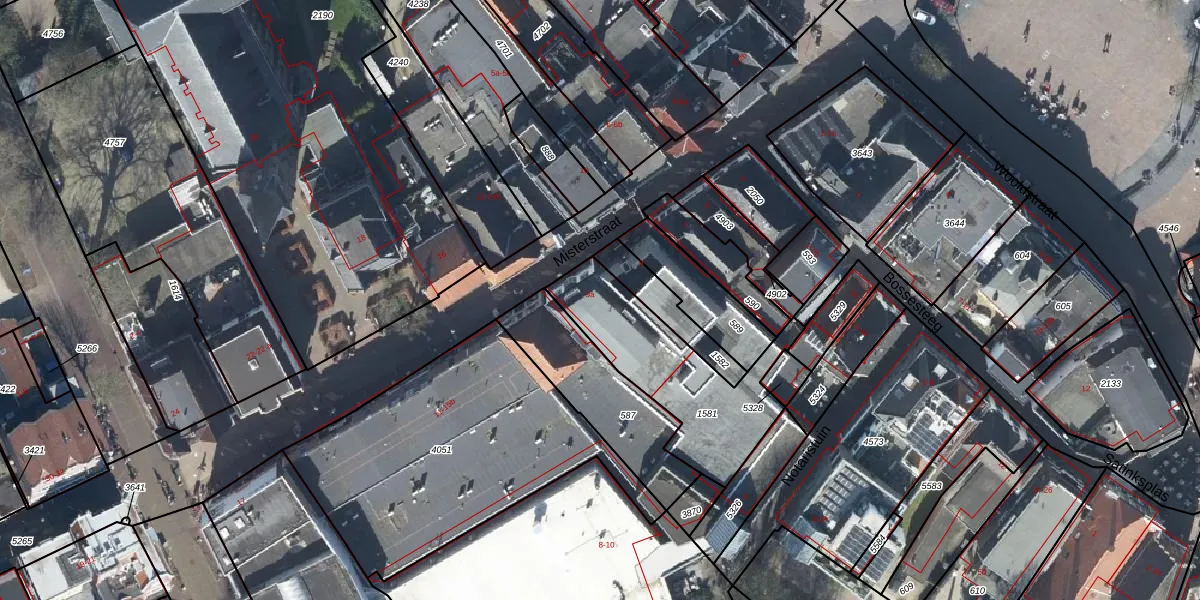 Het perceel waarop Misterstraat 9-a staat heeft een oppervlakte van 555 m². Dit is een groot perceel. De perceeloppervlakte wordt geregistreerd door het Kadaster. Gedetailleerde informatie over de maten van dit perceel kunt u vinden in het rapport Kadastrale kaart met maatvoering van Misterstraat 9-a.