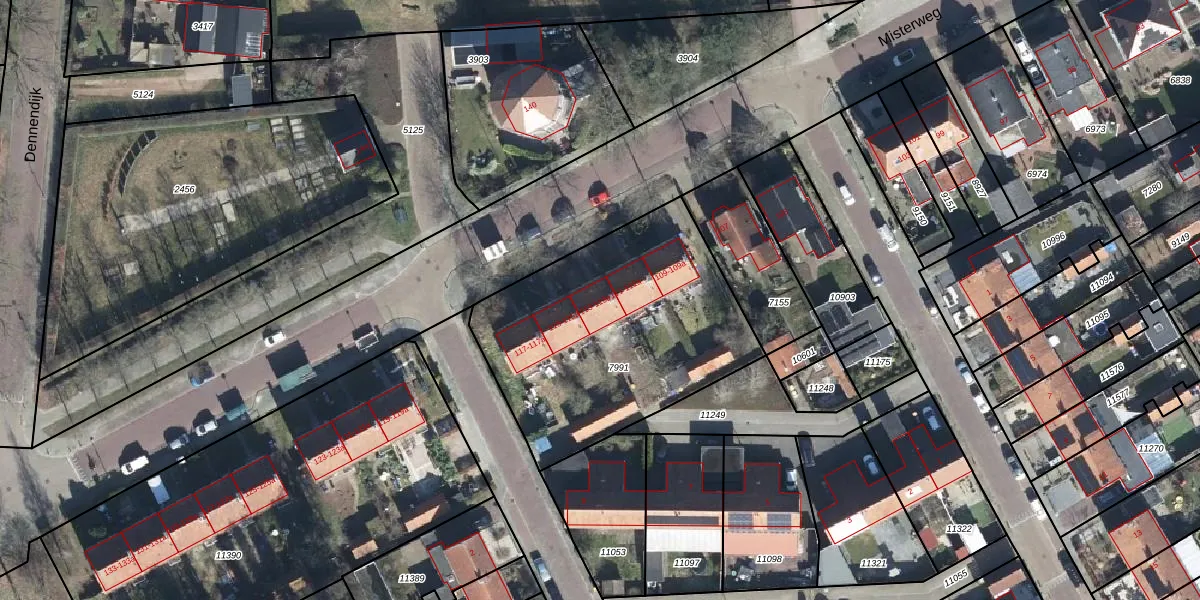 Het perceel waarop Misterweg 113 staat heeft een oppervlakte van 1265 m². Dit is een zeer groot perceel. De perceeloppervlakte wordt geregistreerd door het Kadaster. Gedetailleerde informatie over de maten van dit perceel kunt u vinden in het rapport Kadastrale kaart met maatvoering van Misterweg 113.