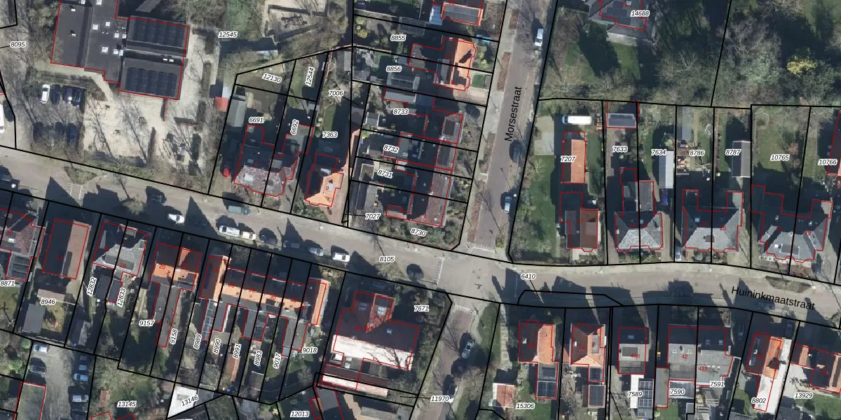 Het perceel waarop Morsestraat 1 staat heeft een oppervlakte van 325 m². Dit is een groot perceel. De perceeloppervlakte wordt geregistreerd door het Kadaster. Gedetailleerde informatie over de maten van dit perceel kunt u vinden in het rapport Kadastrale kaart met maatvoering van Morsestraat 1.
