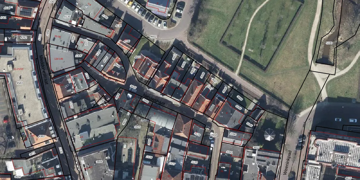 Het perceel waarop Nieuwstraat 16 staat heeft een oppervlakte van 127 m². Dit is een middelgroot perceel. De perceeloppervlakte wordt geregistreerd door het Kadaster. Gedetailleerde informatie over de maten van dit perceel kunt u vinden in het rapport Kadastrale kaart met maatvoering van Nieuwstraat 16.