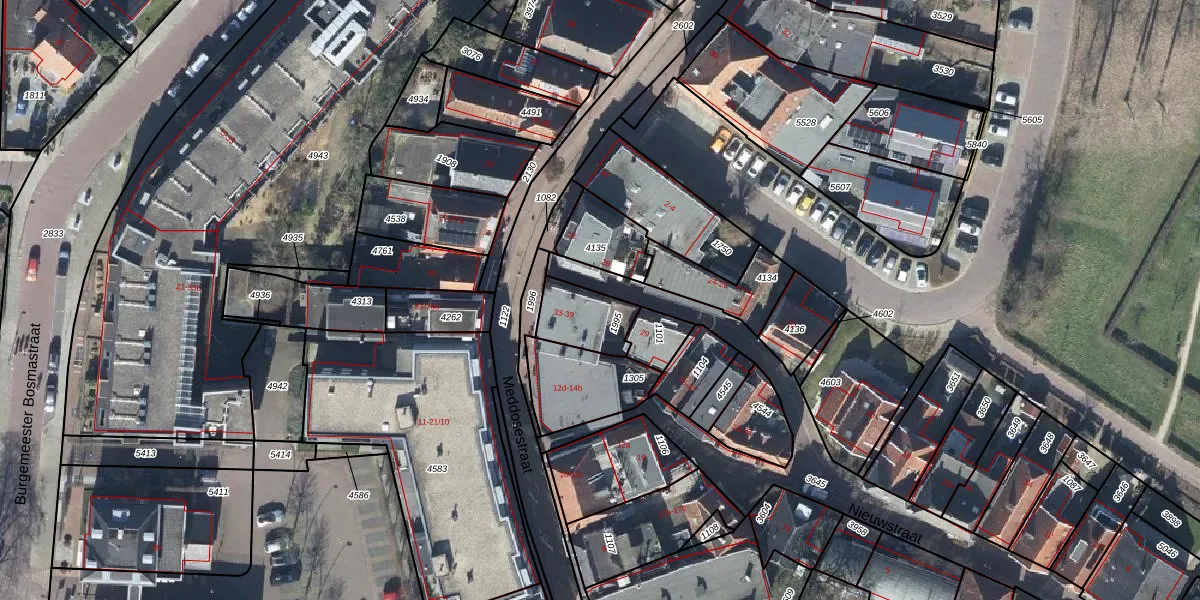 Het perceel waarop Nieuwstraat 35 staat heeft een oppervlakte van 155 m². Dit is een middelgroot perceel. De perceeloppervlakte wordt geregistreerd door het Kadaster. Gedetailleerde informatie over de maten van dit perceel kunt u vinden in het rapport Kadastrale kaart met maatvoering van Nieuwstraat 35.