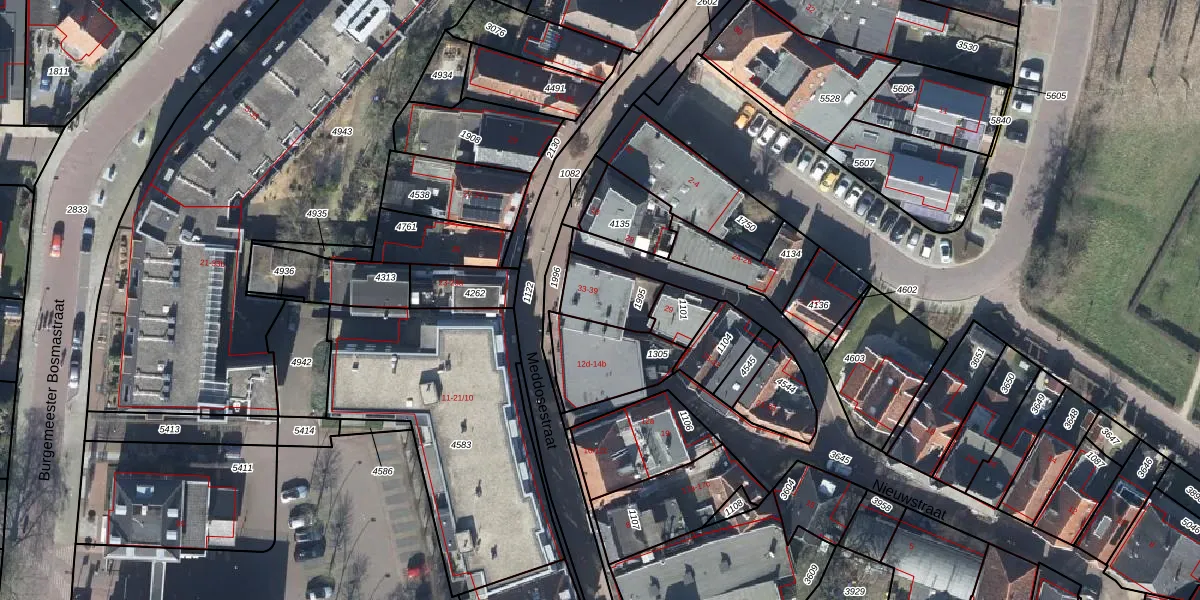 Het perceel waarop Nieuwstraat 37 staat heeft een oppervlakte van 155 m². Dit is een middelgroot perceel. De perceeloppervlakte wordt geregistreerd door het Kadaster. Gedetailleerde informatie over de maten van dit perceel kunt u vinden in het rapport Kadastrale kaart met maatvoering van Nieuwstraat 37.