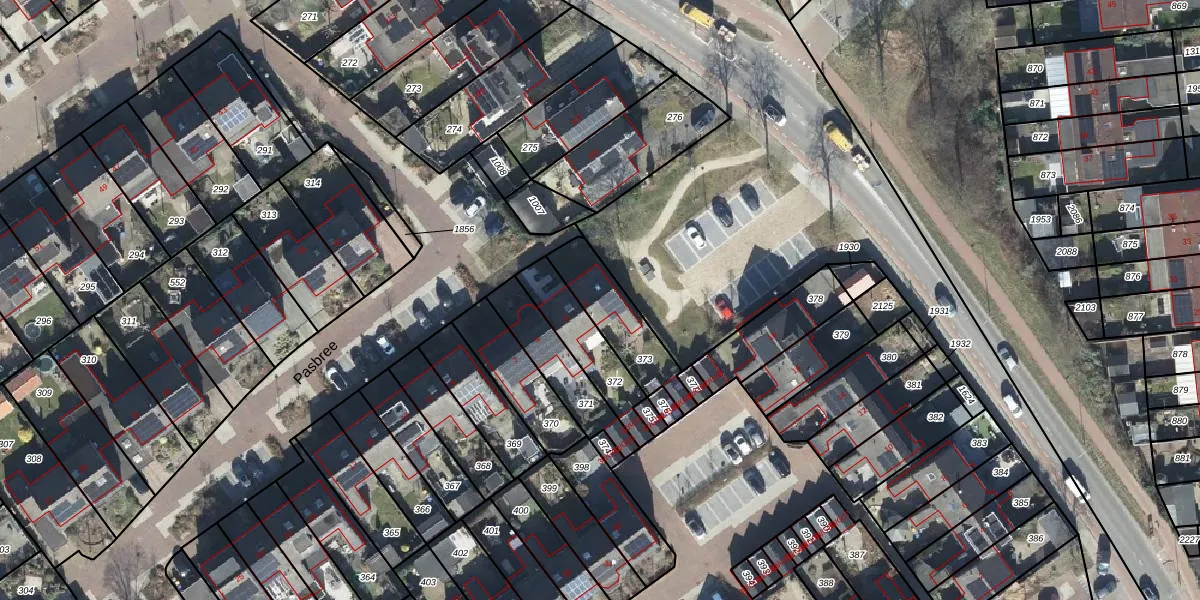 Het perceel waarop Pasbree 1 staat heeft een oppervlakte van 222 m². Dit is een middelgroot perceel. De perceeloppervlakte wordt geregistreerd door het Kadaster. Gedetailleerde informatie over de maten van dit perceel kunt u vinden in het rapport Kadastrale kaart met maatvoering van Pasbree 1.