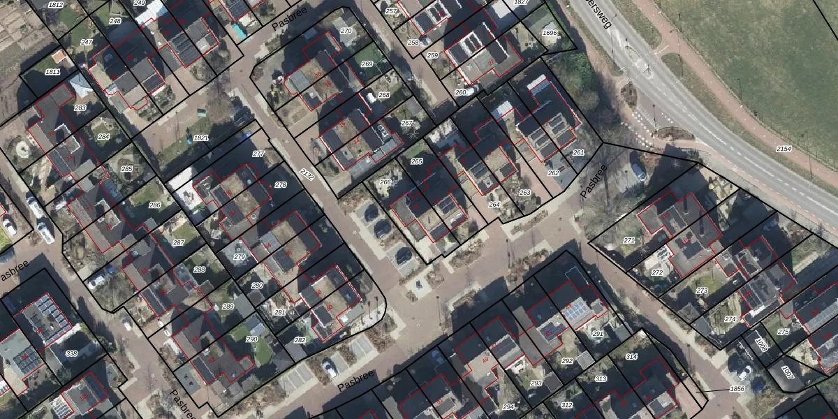 Het perceel waarop Pasbree 12 staat heeft een oppervlakte van 249 m². Dit is een middelgroot perceel. De perceeloppervlakte wordt geregistreerd door het Kadaster. Gedetailleerde informatie over de maten van dit perceel kunt u vinden in het rapport Kadastrale kaart met maatvoering van Pasbree 12.